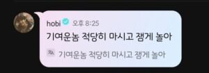 But over time, the members’ attitude shifted. Instead of stopping him, they chose to respect Jungkook’s choices while gently reminding him to care for his health. For example, when Jungkook was drinking a highball during a live, Jimin left sweet comments like: